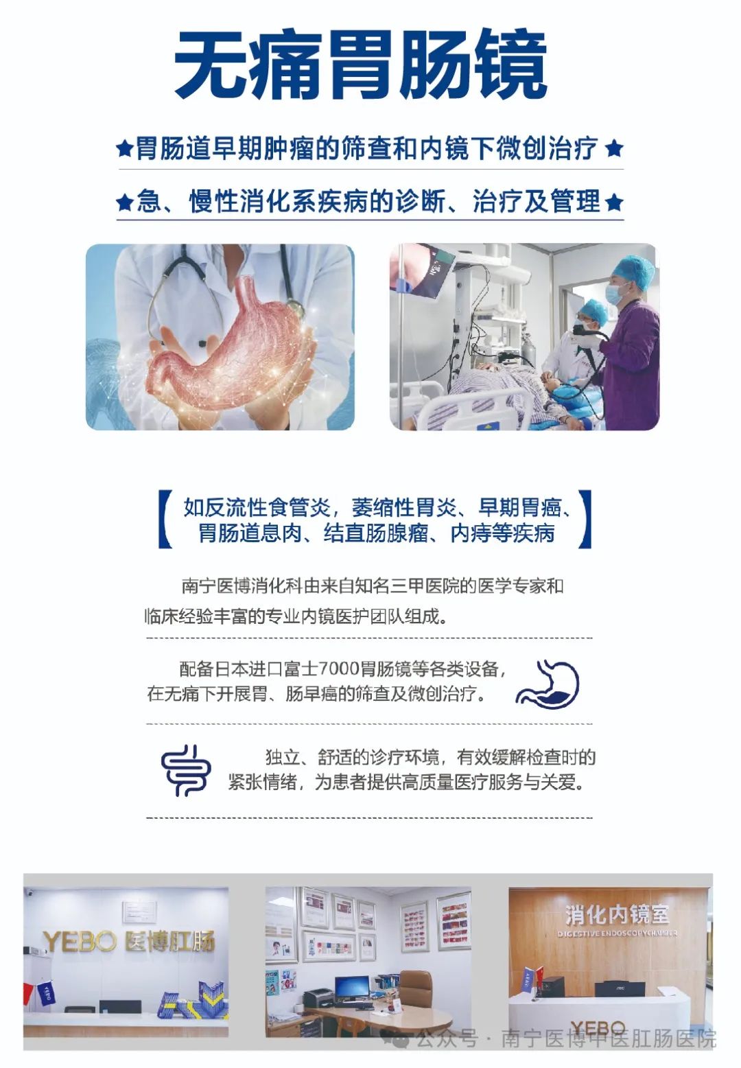 医疗设备在现代化医院建设中,医疗设备的配备水平,成为医院现代化的重要标志和医院整体实力的直接反映。YEBO肛肠医院作为全国连锁的肛肠专门科室医院,为提升医疗检查与诊疗水平,积极回应百姓就医新期待,引入了一系列国内外先进、优良的医疗设备。YEBO肛肠医院充分注重硬件设备的提升和更新换代,不断提高医院硬件设施和相关配套设施的扩充和完善,不断提高医院自身的诊疗水平,以先进的医疗设备为依托,以专业的医疗医术为,以贴心的医疗服务为基础,为全国受肛肠病困扰的人们和全国卫生事业的发展做出应有的贡献!