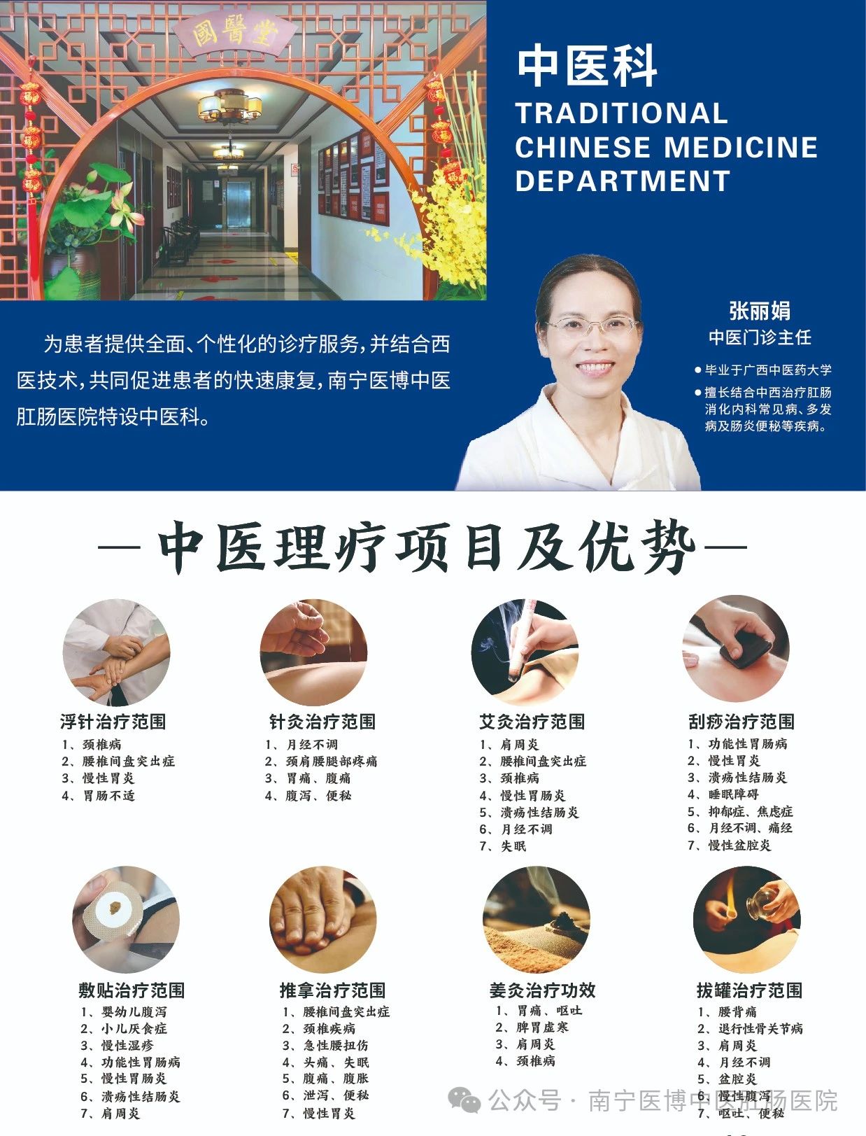 欢迎来到南宁医博中医肛肠医院中医科!南宁医博中医肛肠医院中医科经过多年的不断发展,目前的中医科是一个医师咸集,充满生机活力的科室。全科坚持以中医药为主,突出中医辨证辨病特色,采用中西医结合的方法治疗肛肠、胃肠疾病和各种疑难病,取得了良好的临床效果。